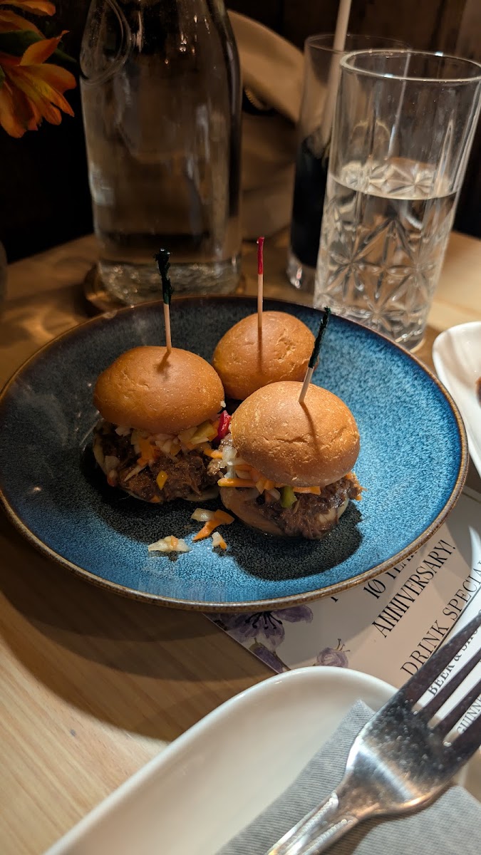 Purple Patch was highly recommended by a friend so I had to check it out for myself! I stopped by with a friend and we really enjoyed both the meal and the overall vibe of space. The restaurant has a very intimate feel. It's tucked slightly underground and set up kind of like a shotgun house: long, narrow and cozy. When you walk in theres a bar immediately to the right and as you move further in, there is more dining space. It's a very snug space so you'll be fairly close to others who are dining. One thing to note is that some of the hot dishes come out sizzling so there's a fair amount of smoke that hangs in the air. It didn't bother me and can add to the drama and character of the space so just something to be aware of. Service was warm and welcoming so no complaints there!. The staff was attentive and friendly which made for a great experience. We tried a bunch of things off the menu. We started with the Mama Alice's Lumpias and the Purple Patch wings and both were pretty tasty. The Purple Patch beef sliders where also solid. For my main, I had the coconut curry chicken with rice which was pretty good but I found myself wanting a bit more flavor to make it stand out for me. To finish things off I had the Ube Cheesecake. You really can't go wrong with ube! It complimented the meal well. Overall while nothing we had blew me away everything was good! It was a enjoyable experience and I will definitely go back to try more items on the menu. And the prices were really good for DC. I can definitely see why Purple Patch has a loyal following.