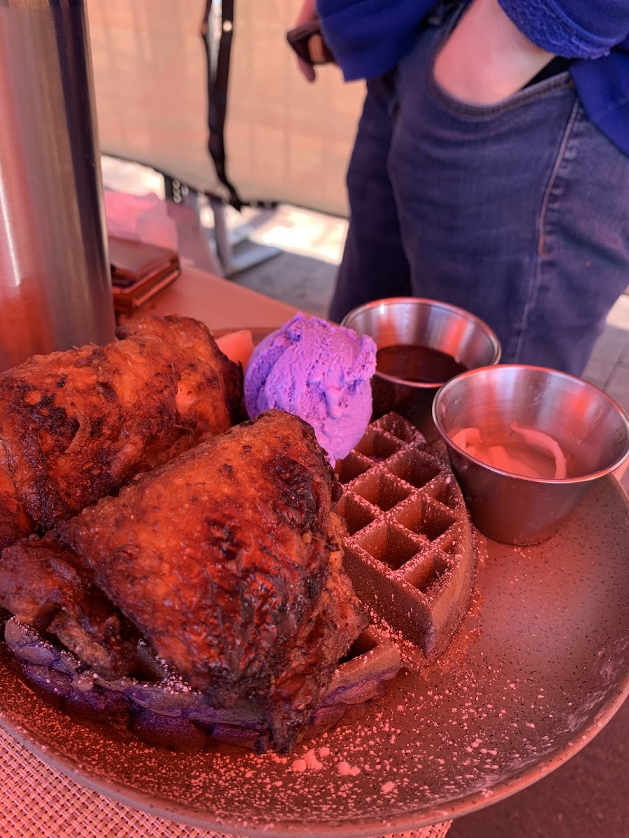 - Ube Waffle W/ Filipino Fried Chicken & Ube Ice CreamUS$22.00